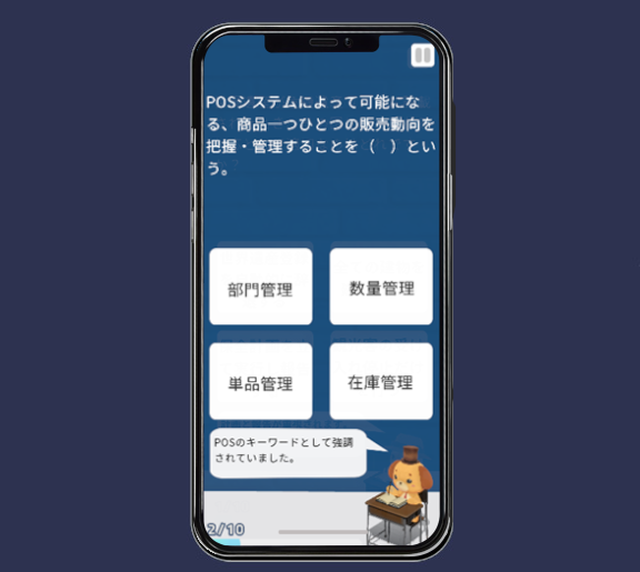 販売・流通・マーケティングに関する知識をクイズ演習で着実に積み重ねていきます。